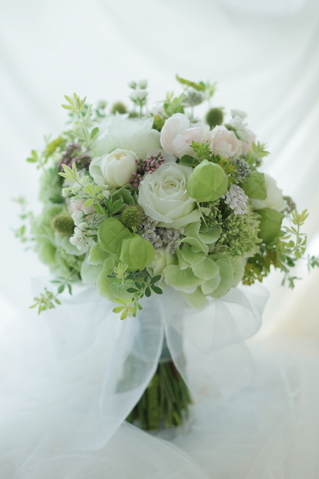 実は花嫁さまは花がちょっと苦手、でもブーケかわいいですとよろこんでくださったそうです。ほっとしました。