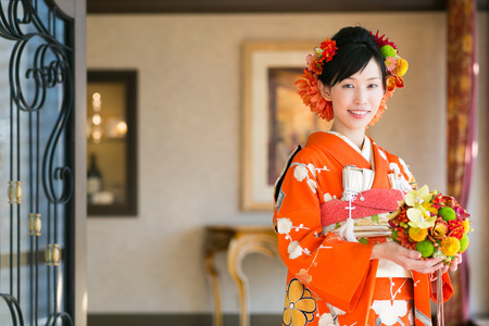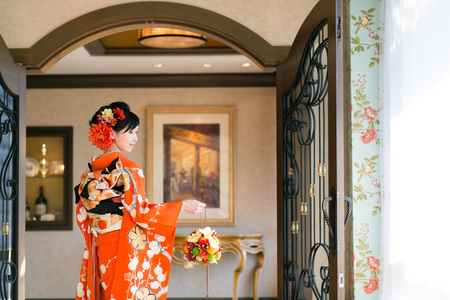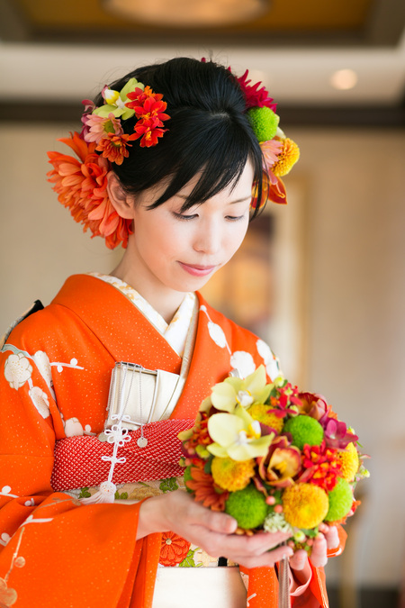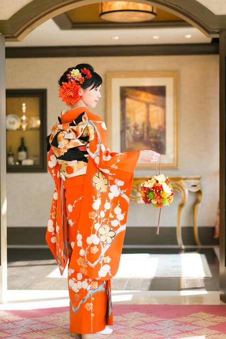 振袖に持つボールブーケ、オークラ様へお届けしました。