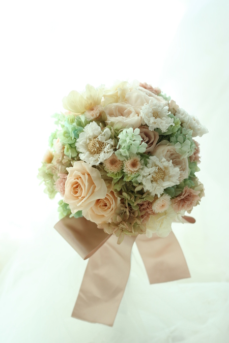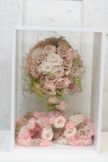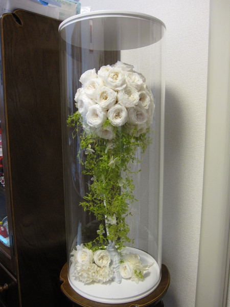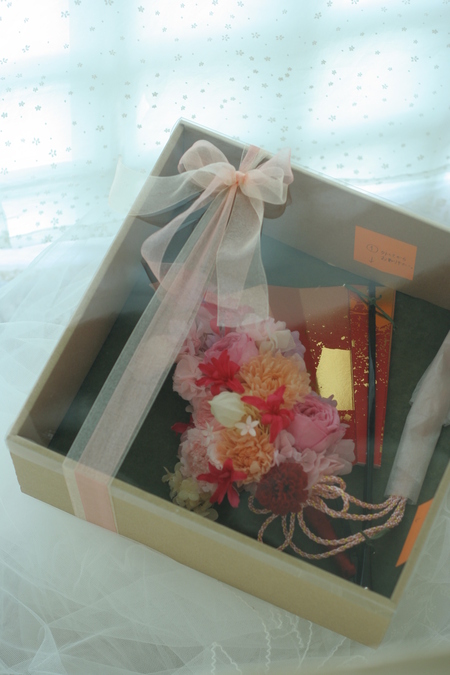 冒頭の写真は、そのブーケを、円筒形のケースにいれて