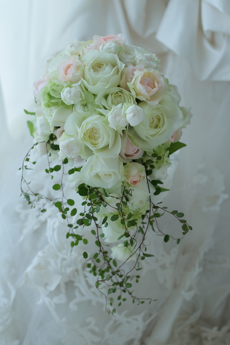 綱町三井倶楽部様へお届けしたセミキャスケードブーケ、