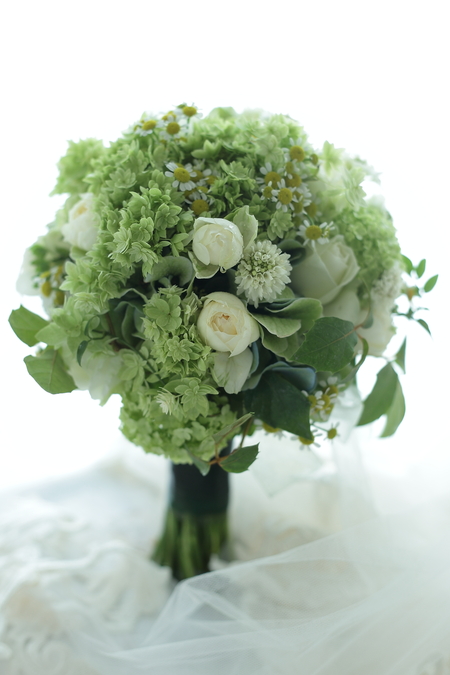 クラッチブーケ 緑とマトリカリア 松濤レストラン様へ