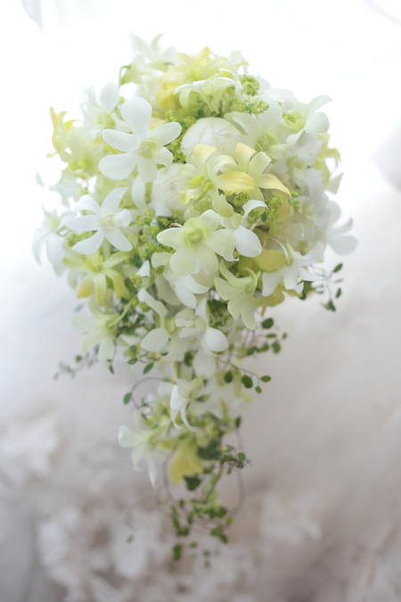 ゴージャスなイメージのある蘭の花を、可憐に華奢なブーケに。
