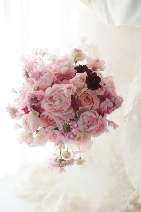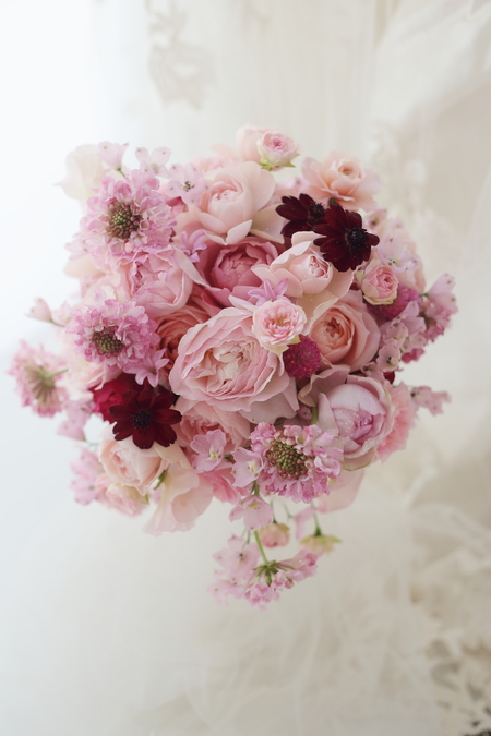 たくさんのピンクに少しだけ赤の挿し色をいれて。