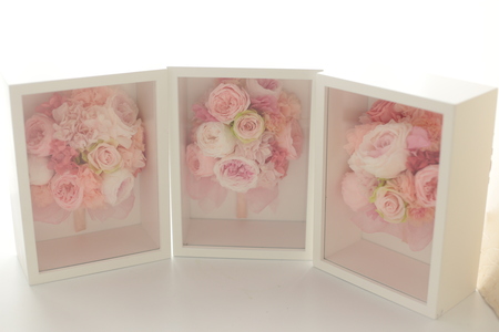 今回は一つのブーケを3シェアにして、それぞれのご両家へ。