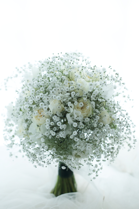 大粒のカスミソウをどっさり束ねて、