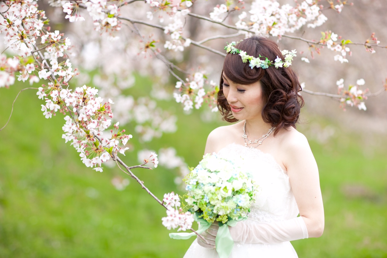 桜の花に包まれた、この花嫁様の一枚のお写真を