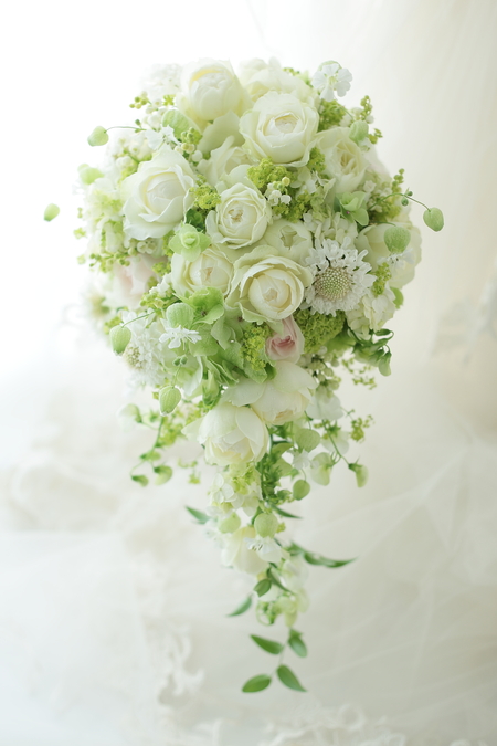 白ブーケは、希望通りのこぼれるようなブーケでした!