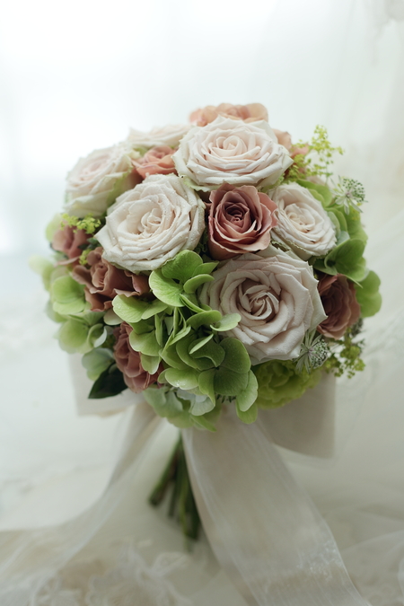 ウェディングの花の演出とブーケ。たった一日の花、でもいつまでも残る花を。