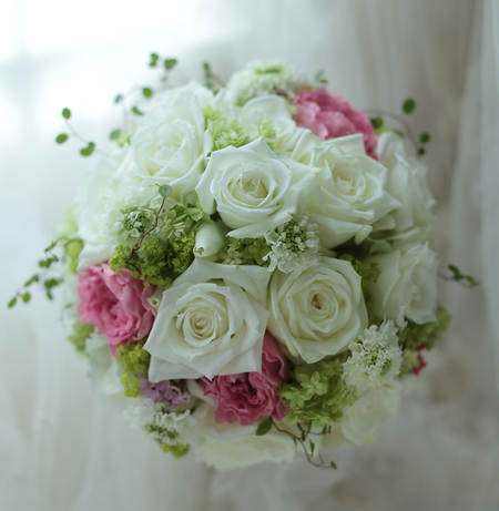 白×グリーンという組み合わせはブーケの鉄板ですが、