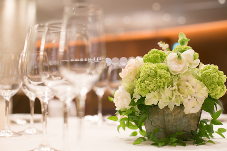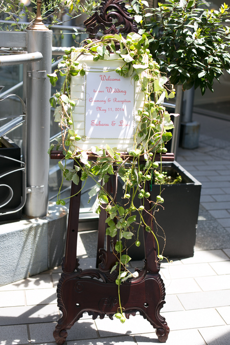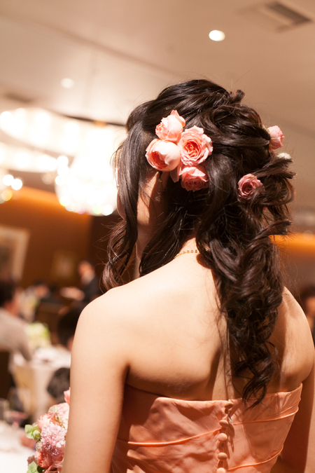 花をセッティングする最中すでに到着したたくさんのゲストが、