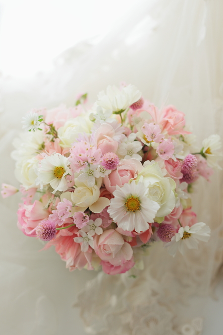 ご新郎様の好きなイメージ、白とピンクのブーケと