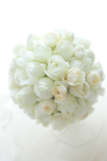白い、丸いバラだけで。