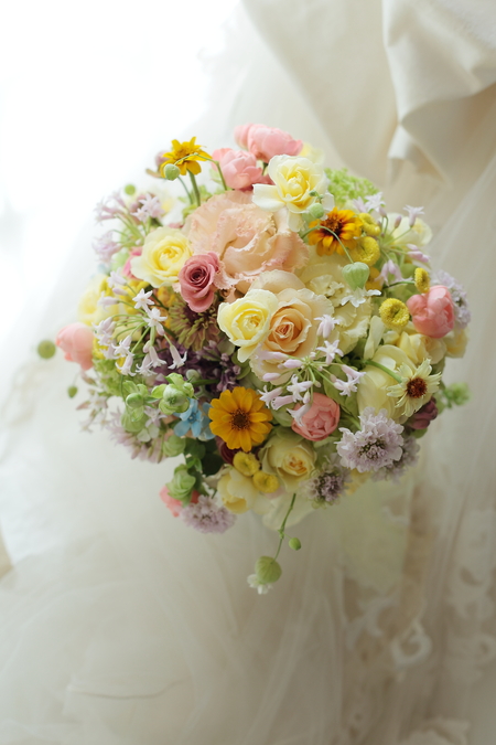 ミックスカラーのブーケは思っていたとおりとっても可愛くて、