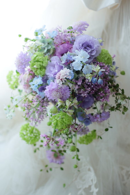 紫のブーケは、自分もとても好きです。