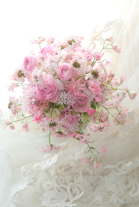 ふんわり揺れる甘あまのベビーピンクのブーケ、