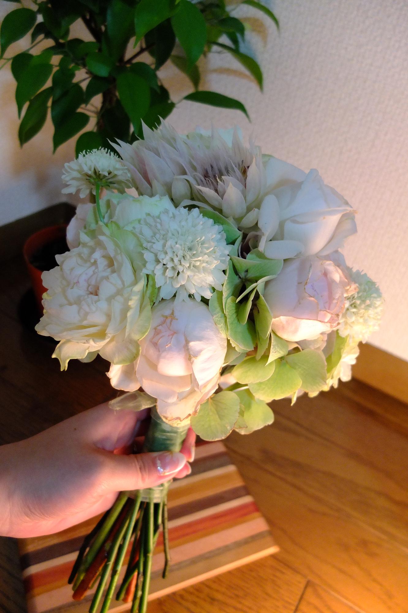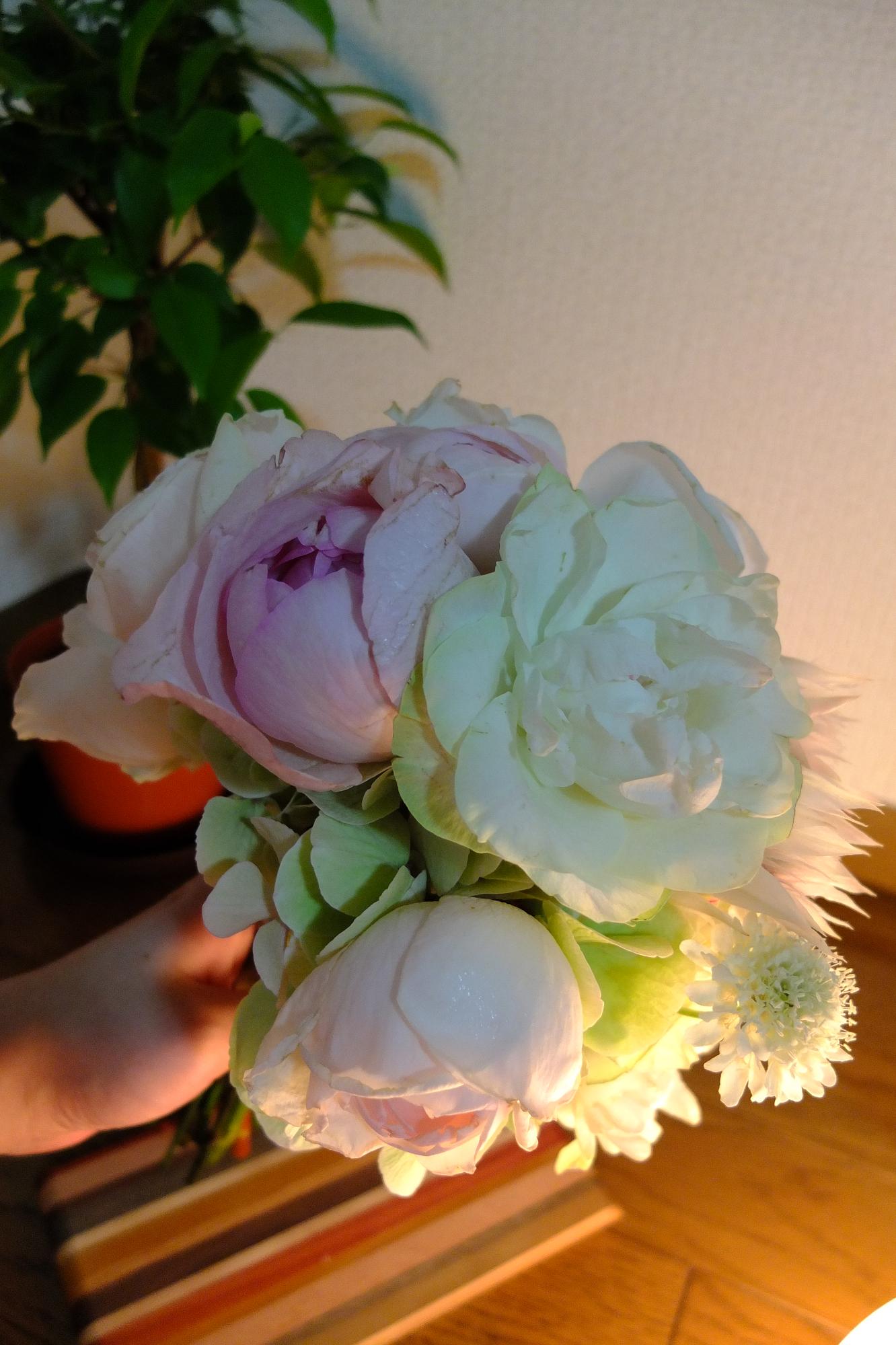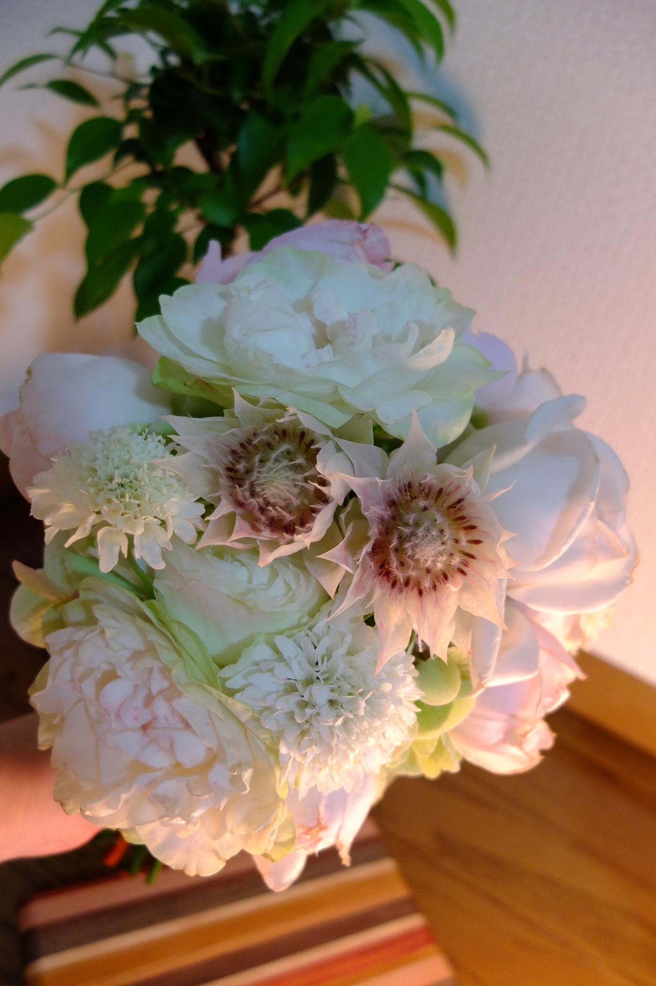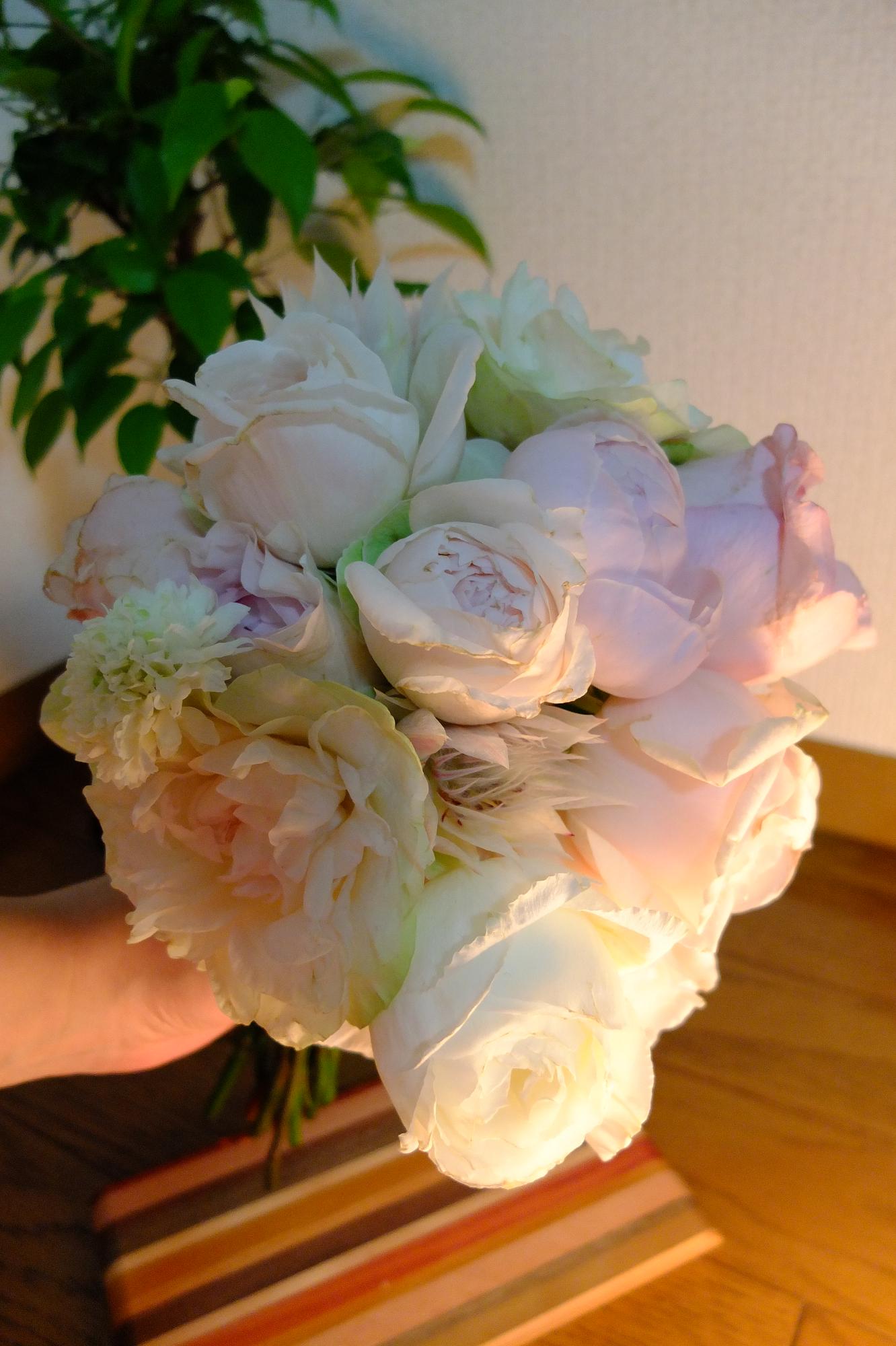 白っぽいブーケが届いて、