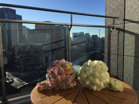 式後に2つのブーケを持って撮ってもらった写真もついでに。。