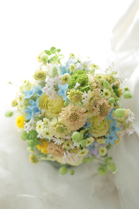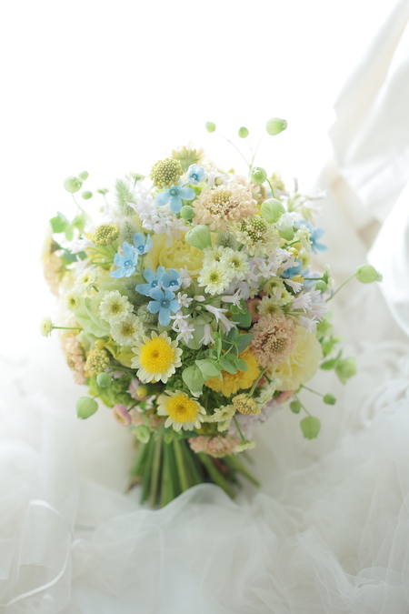 黄色とクリームのブーケで。
