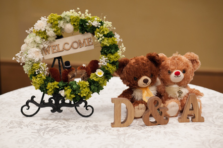 ウエルカムリースなどたくさんの花を結婚式用に手作りされました。