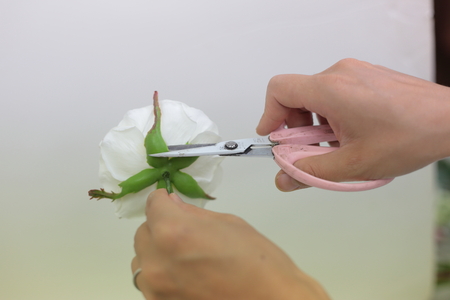 花の下のガクは、大きいのは切り取ります。