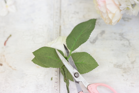 切り取った花や葉はワイヤリングしておきます。