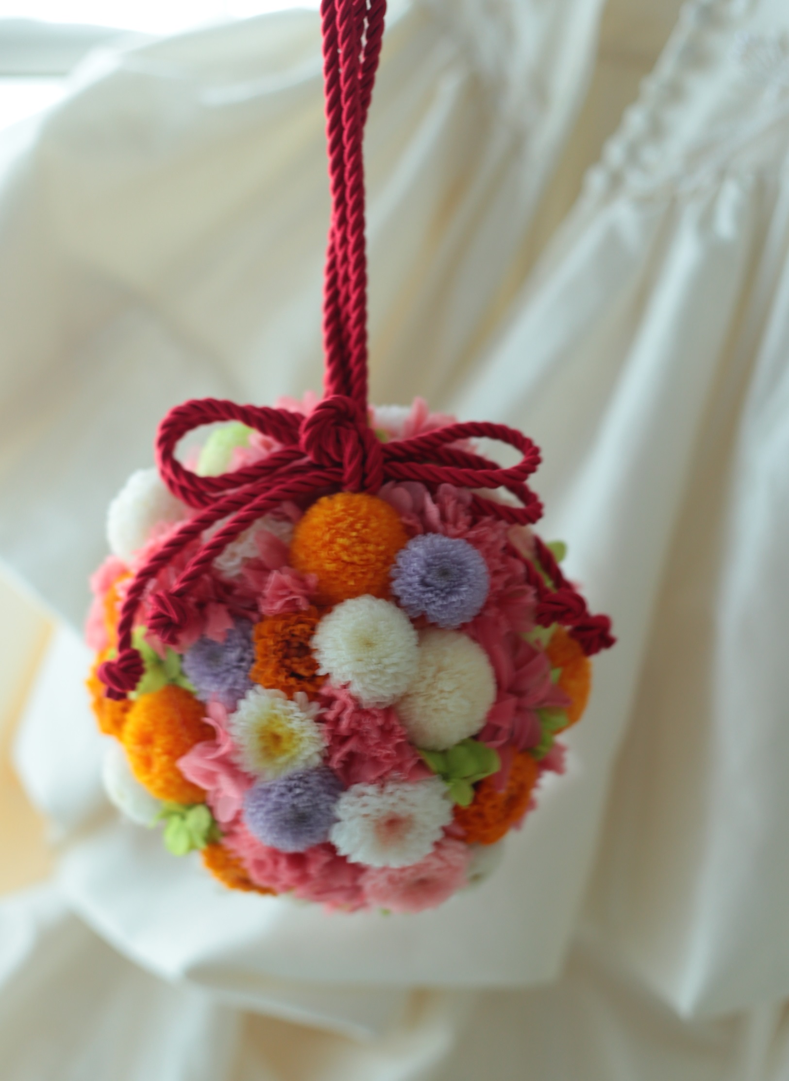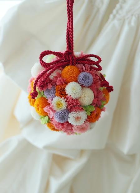 花嫁さまへ、こちらは和装用のボールブーケです。