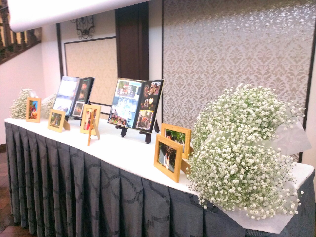 チャペルのカスミソウは二次会でも可愛く飾ってもらえて大活躍、