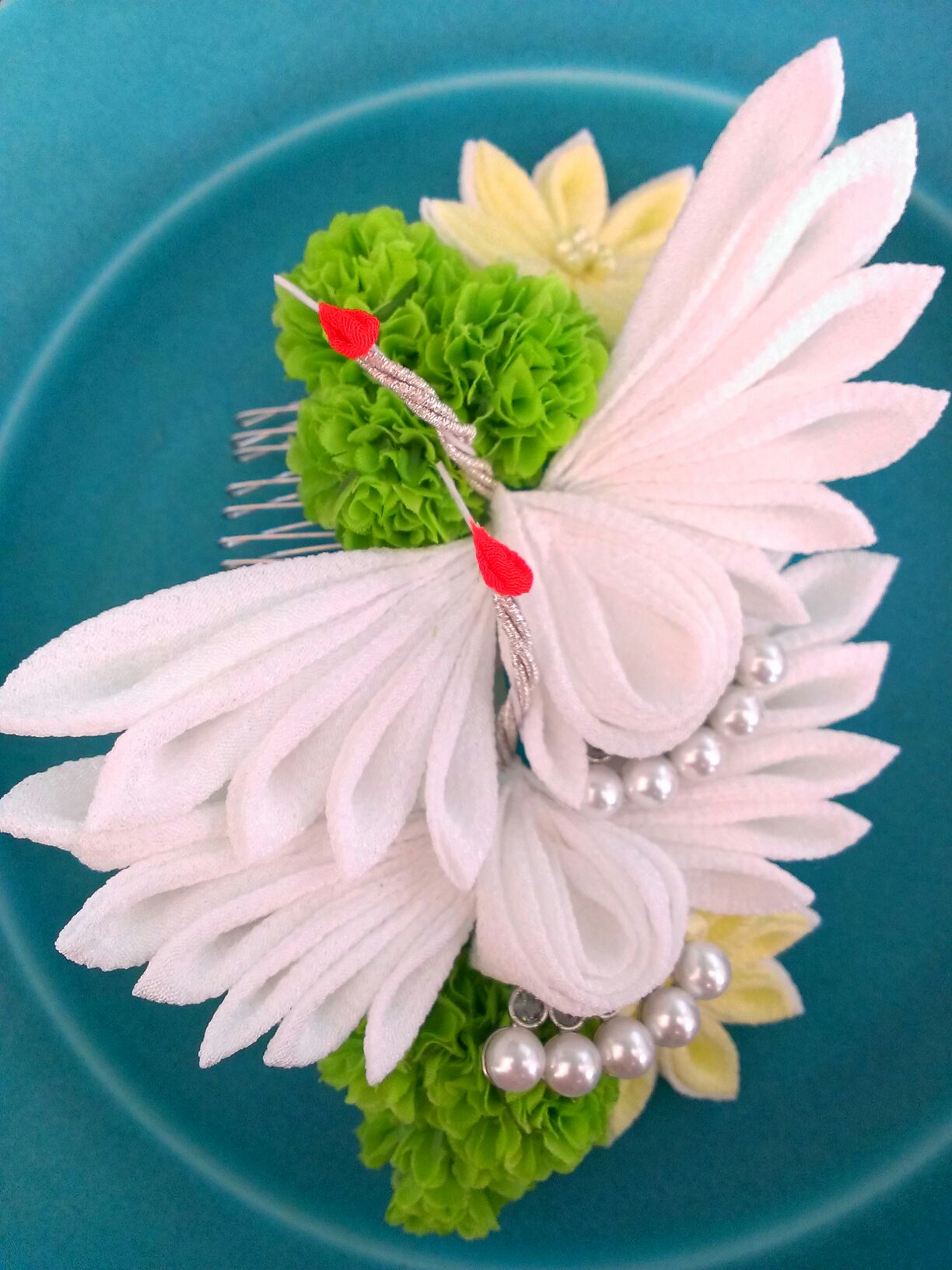 鶴の髪飾りと統一感が出たかなと…