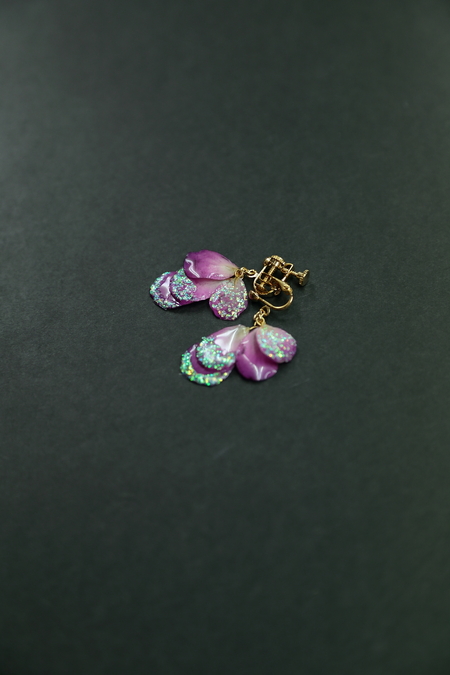 花をレジン加工してイヤリングになさったり、
