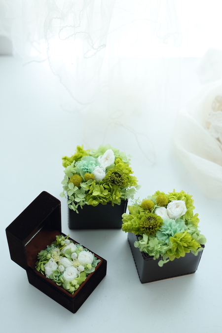 差し上げられたプリザーブドフラワーも同じトーンのお花で。