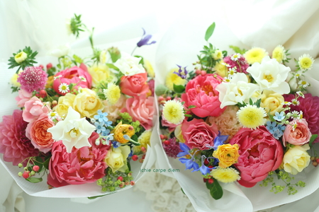 本日クラシカ表参道様へ、5月のブーケ、芍薬をいれてカラフルに。
