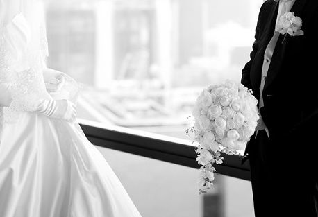 この一枚の、お二人の手の間に、一会のブーケがあることを