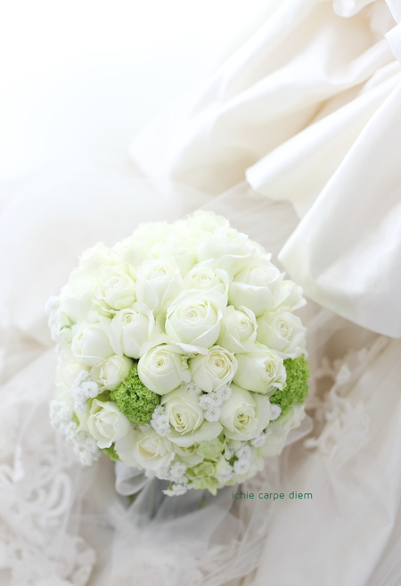 挙式用の、丸いバラのクラッチブーケ、アニヴェルセルみなとみらい様へ。