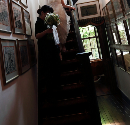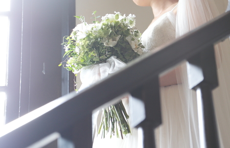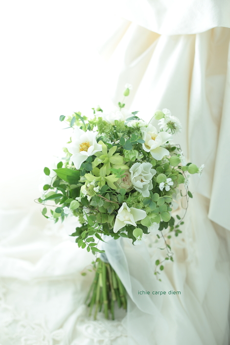 緑を多めに束ねたブーケ、シェ松尾松濤レストラン様へ。