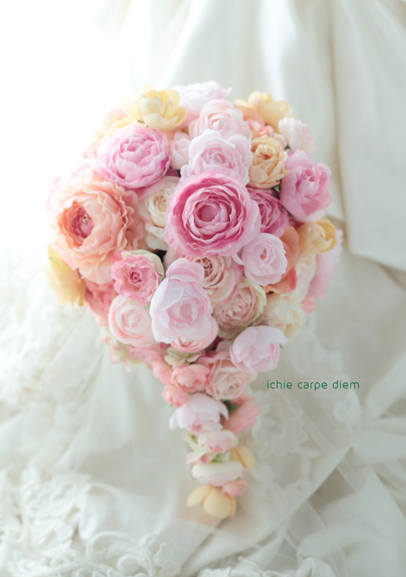 海外挙式のブーケはプリザーブドフラワーで作り、