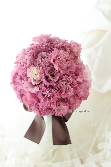 ちょっと珍しい色のトルコキキョウだけで作っています。