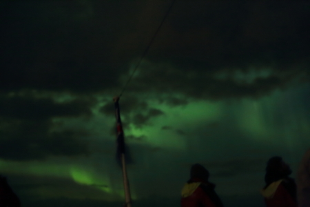 岩橋「寒いです。コート着てます。ちょうどいま、船の上でオーロラ見てます」