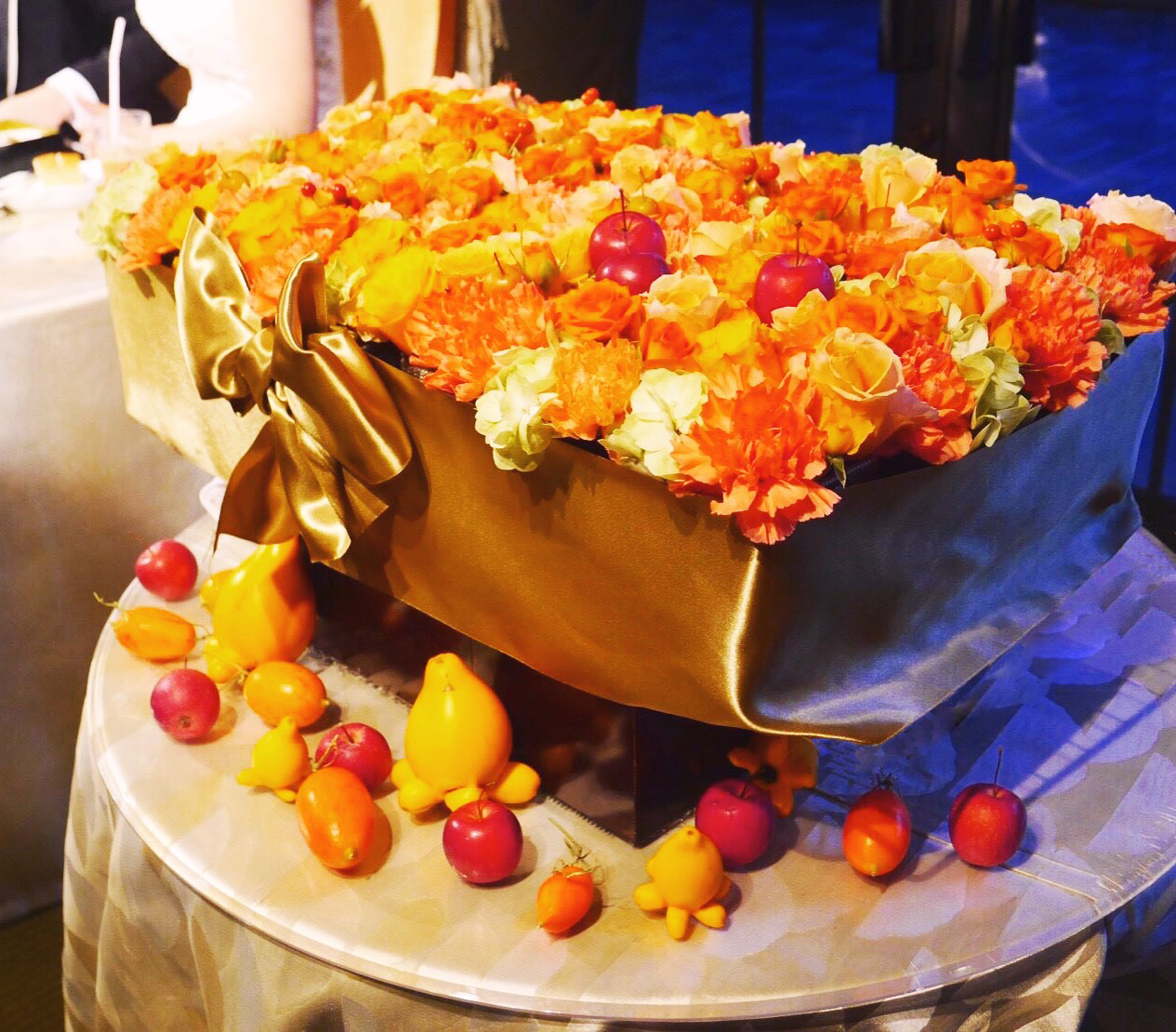 大ぶりのゴールドのリボンも花ととてもマッチしていて一層華やかでした。