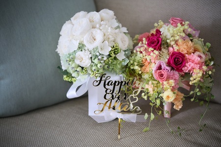 ご自分たちで、ブーケをドレスにあわせてリメイクすることに。