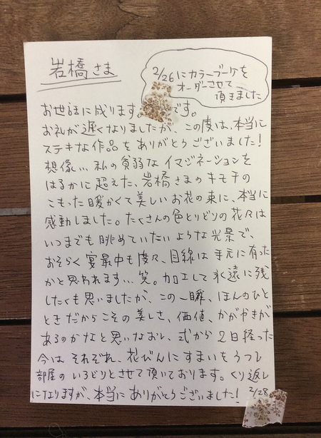 当日は、岩橋さまのお花に字面通り花(華)を添えて頂き、