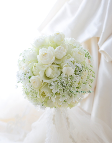 先日の高輪教会さまへの白のラウンドブーケ。