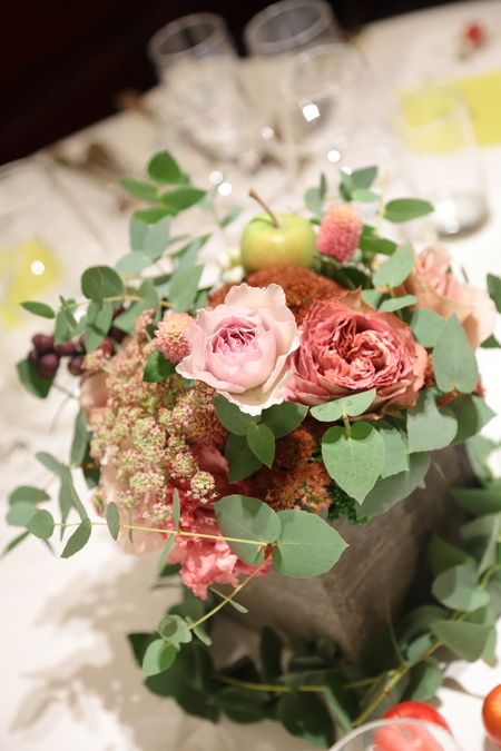 ユーカリと、セピアピンクと紅茶色のバラで。