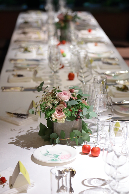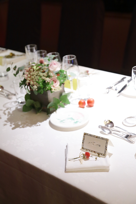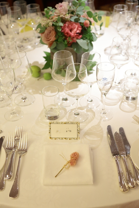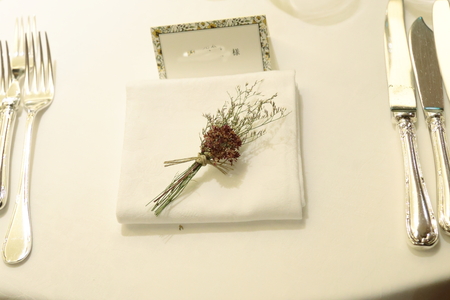 すべてのゲストの皆様へ、ナフキンフラワーをひとつずつ。