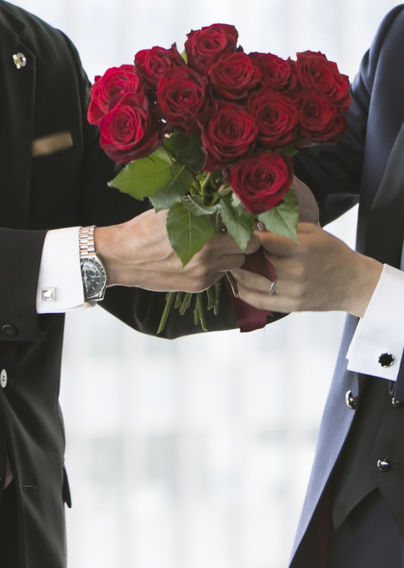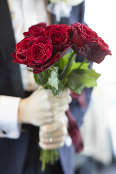 12本のバラを新郎が束ねて、プロポーズとして花嫁様に