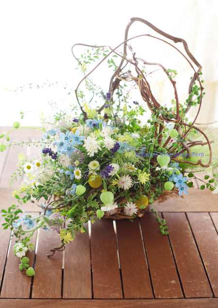 ナチュラルな雰囲気で、カゴにもツルを遊ばせて。