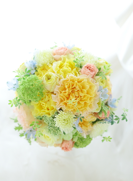 レモンイエローの元気が出るブーケ。