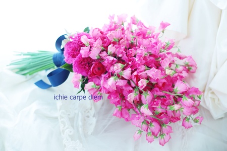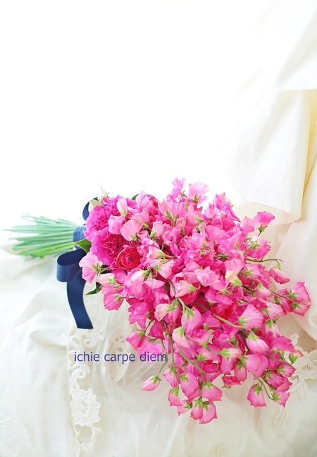 前撮りのブーケは、このスイートピーどっさりの中に