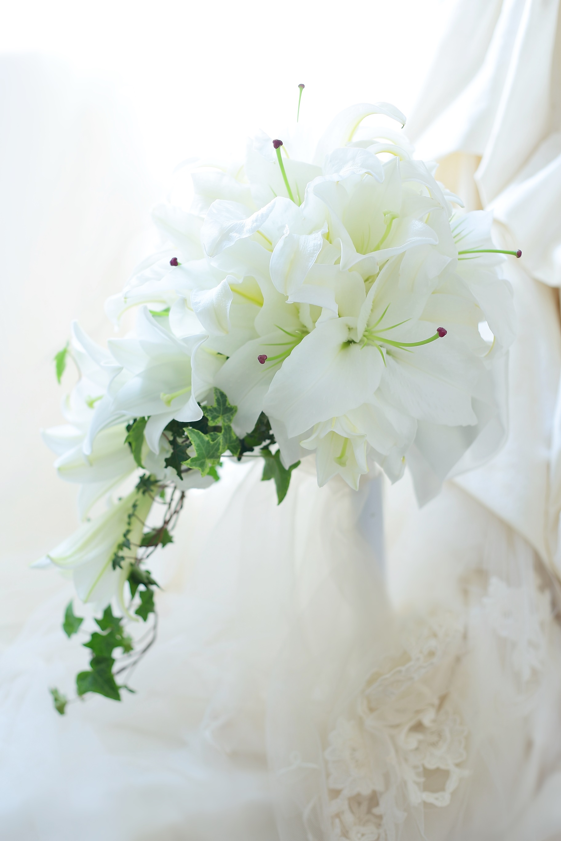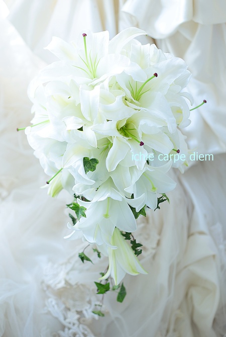 ホテル椿山荘東京さまへ、ユリだけのキャスケードブーケでした。