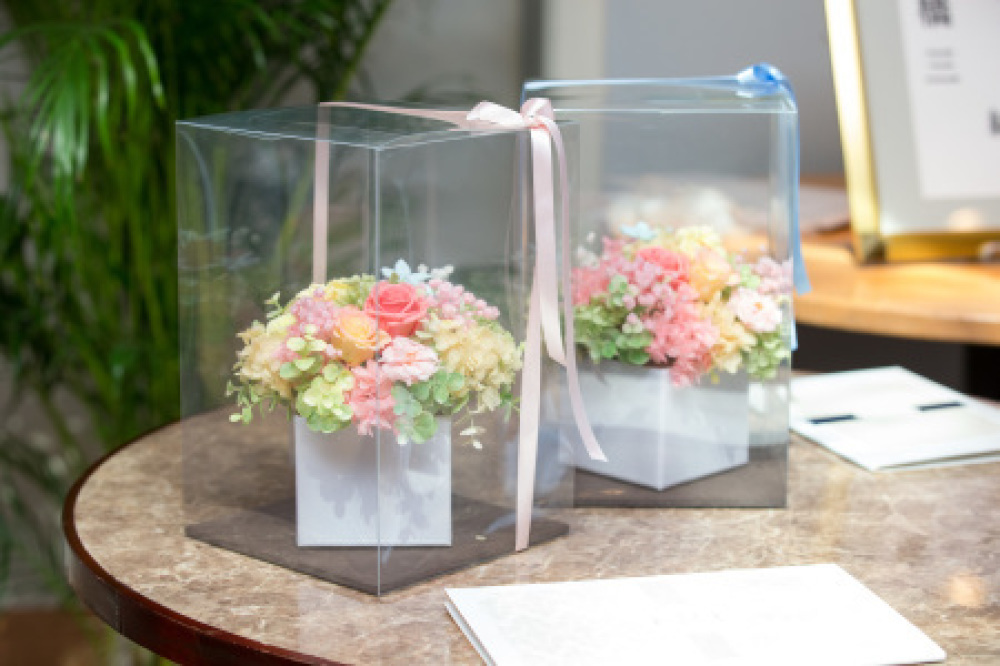 プリザーブドブーケがこれからも、お二人のそばできれいに咲き続けくれますように、