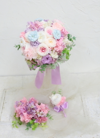まわりに、ブーケの残りの花を飾って。かわいい。